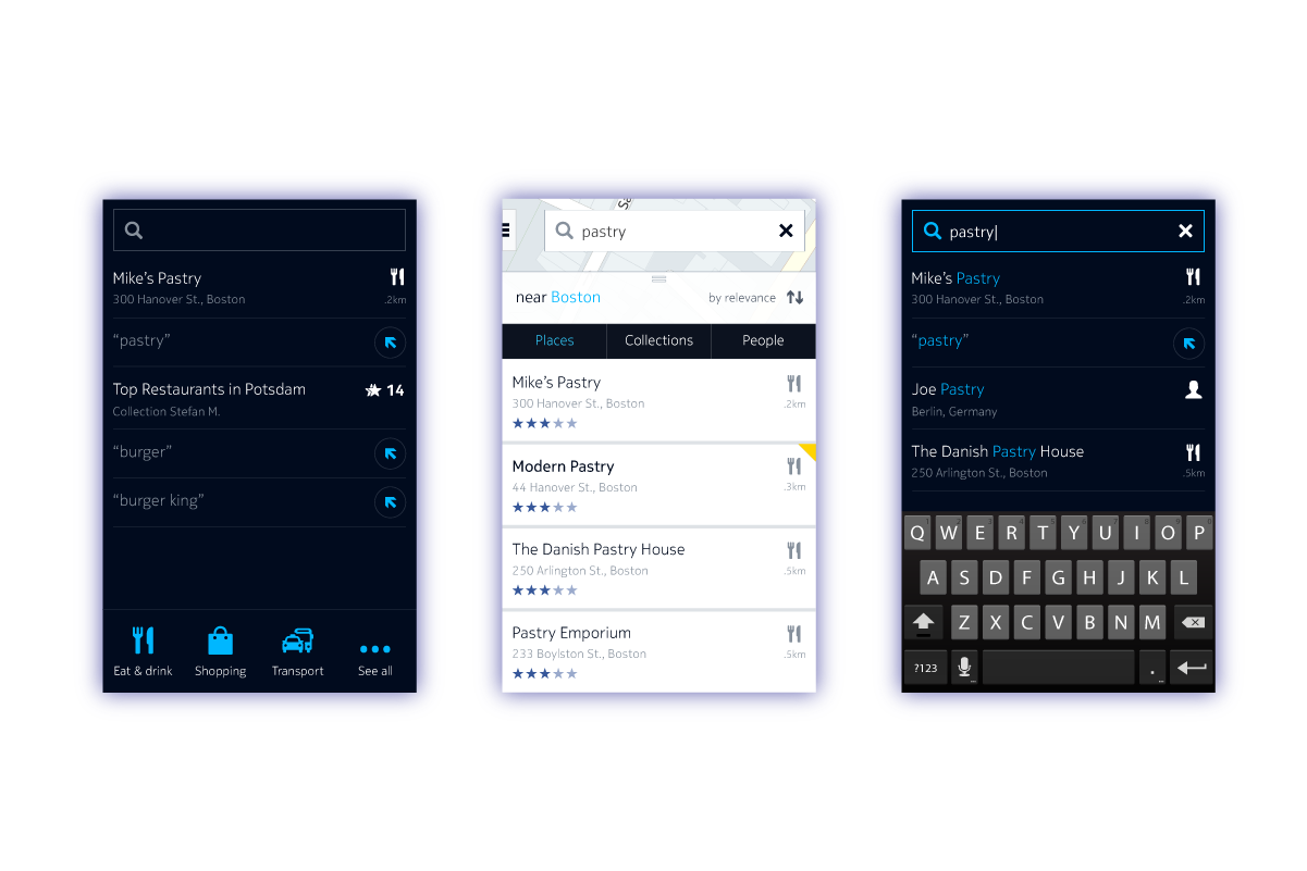 The HERE Explore app delivered a door to local knowledge about cities all over the globe. The contextual recommendations engine was fueled by the lists created by users everywhere. Once the right place is found it is easy to navigate to it.